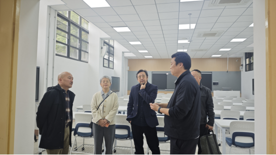检查组一行走访教室