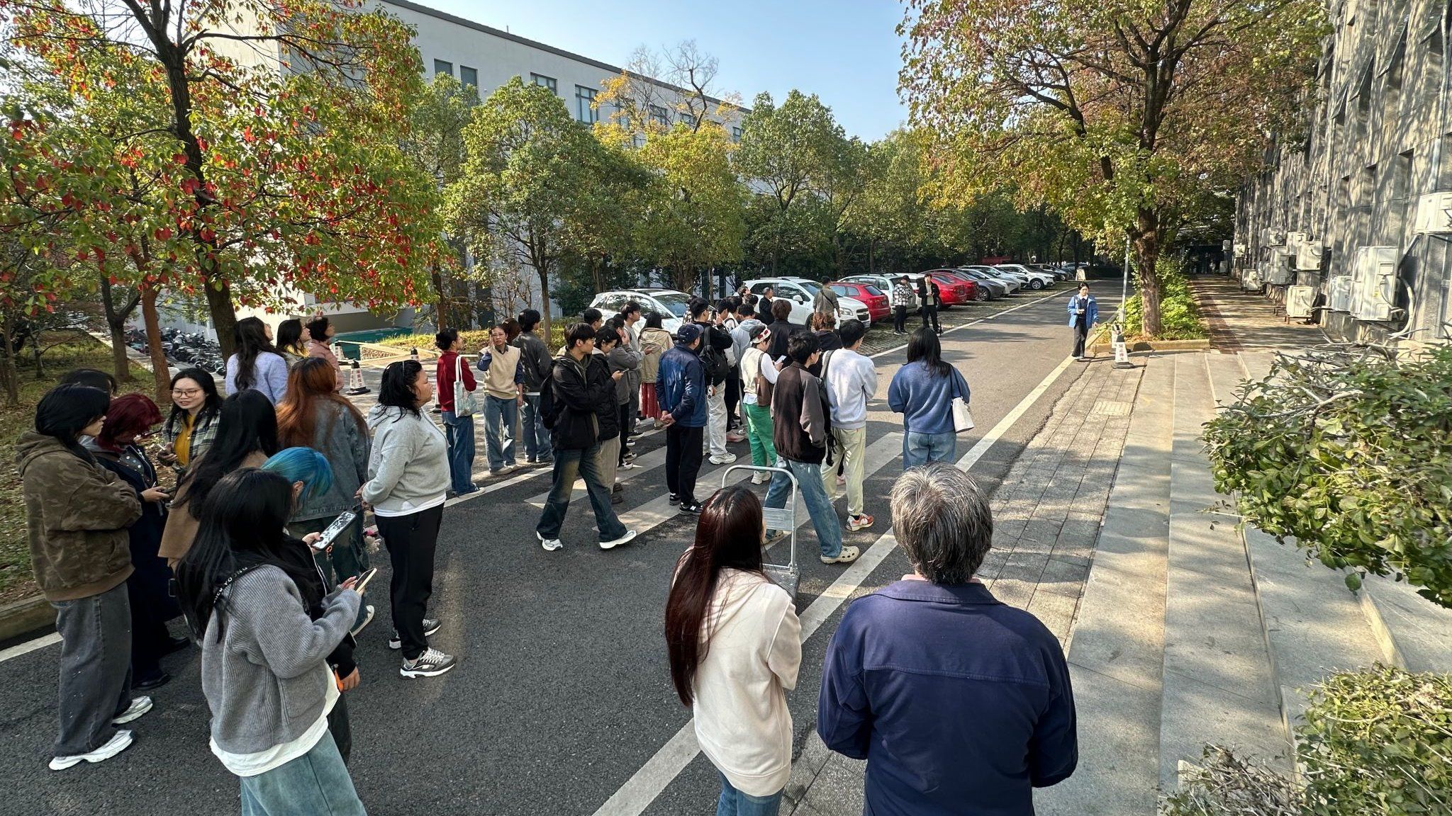 参训师生进行室外场景应用勘测